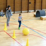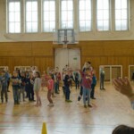 A foglalkozások után az iskolai mindennapos testnevelésből kaptak ízelítőt a gyerekek. Rövid, zenés bemelegítő torna után, különböző akadálypályákon kellett végig menniük. És aki még bírta szusszal, az részt vehetett egy igazán gyors fogójátékban is.