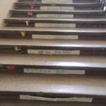 Az első napon kikerültek az idegen nyelvi üdvözletek a lépcsőkre, ezen kívül lufikkal is színesítettük az épületet.