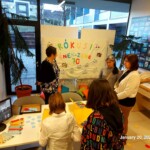 A kiállító térben lévő stand a beiskolázási programunk részeként jelent meg: zenekuckót építettünk fel a gyermekek számára, akik nagy szeretettel léptek be a zene-térbe. Kártyajátékok és zenei kirakók adták a közös játék örömét, ritmushangszerekkel és munkáltató kártyákkal lehetett a bennük rejlő kreativitást előhozni, illetve egy Bee-bot méhecske is segítette a programozás világán keresztül bemutatni, hogy a hangszerek világában mindenki el tudja kalauzolni magát. Mindeközben egy kivetítőn büszkén mutattunk részleteket korábbi színvonalas szerepléseinkből, bemutató órák részleteiből, illetve intézményünk emelt szintű ének-zenei oktatásának bemutató kisfilmből.
