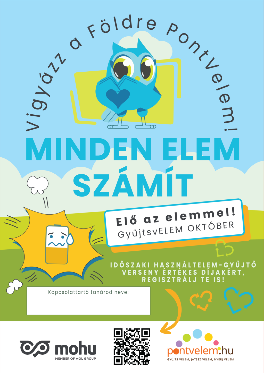 A PontVelem Okos Program idén ősszel is meghirdeti időszaki használtelem-gyűjtő versenyét. A program az ország legnagyobb iskolai szelektív hulladékgyűjtő versenye.  Ebben a tanévben iskolánk is csatlakozik a gyűjtéshez.