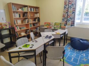 A könyvárban az aktuális évszakhoz, ünnepekhez kapcsolódóan kiállítás, könyvajánló található.